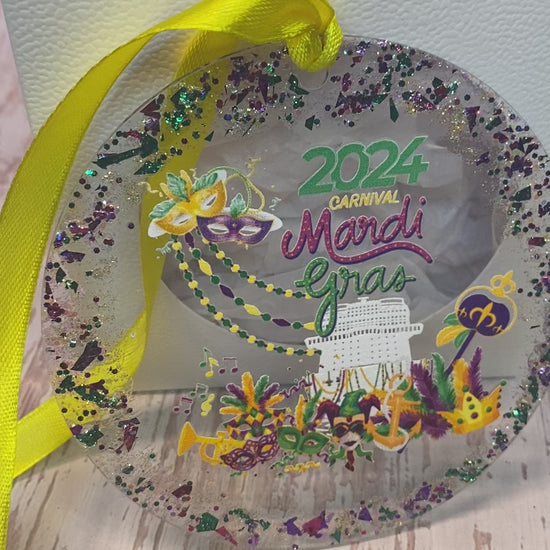 Custom Carnival Mardi Gras Cruise Ornament 2024/2025 - Glitter Carnival Ship Souvenir Keepsake, Carnival Mardi Gras Cruise Gift