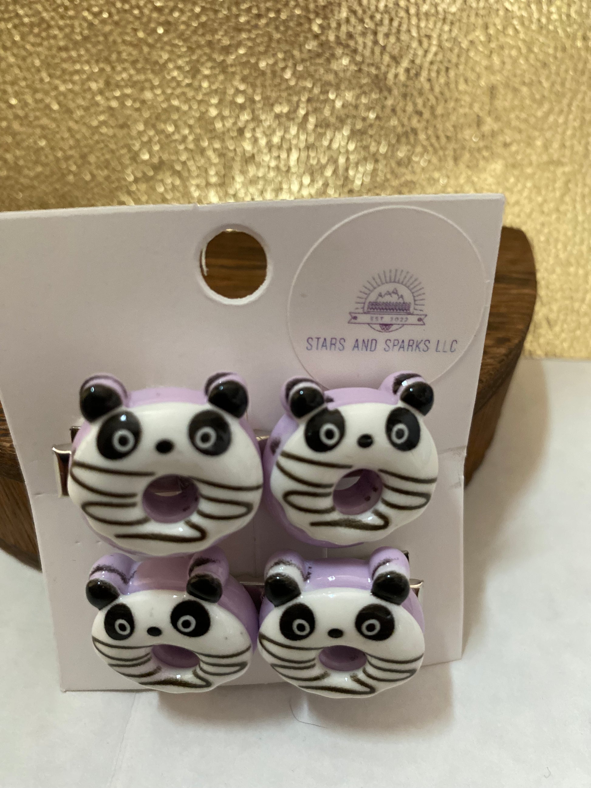 Add a spark of fun and cuteness to your hairstyle with our eye-catching doughnut-shaped animal hair clips! These vibrant and playful hair accessories come in a variety of adorable animal designs, from pandas to bunny rabbits! Available in two sizes, our hair clips are perfect for both kids and adults alike who love to express their unique style. Whether you are giving as a gift or just want to show off your personality, these doughnut shaped cuties are a must have!