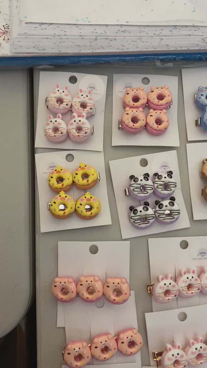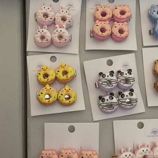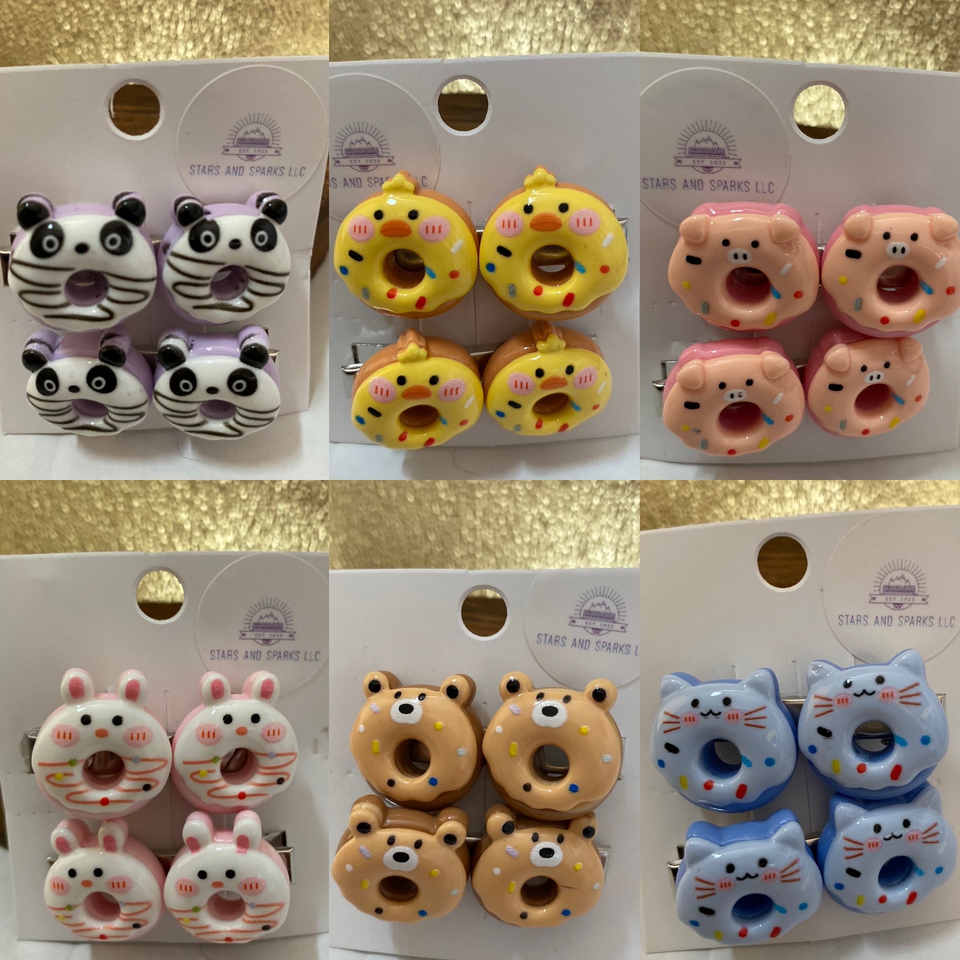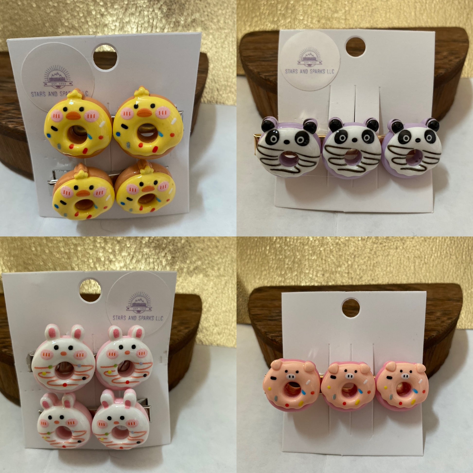 Fun Colorful and Playful Doughnut Shaped Animal Themed Hair Clips, Cute Hair Accessory, Animal, Candy Coated Hair Barrettes