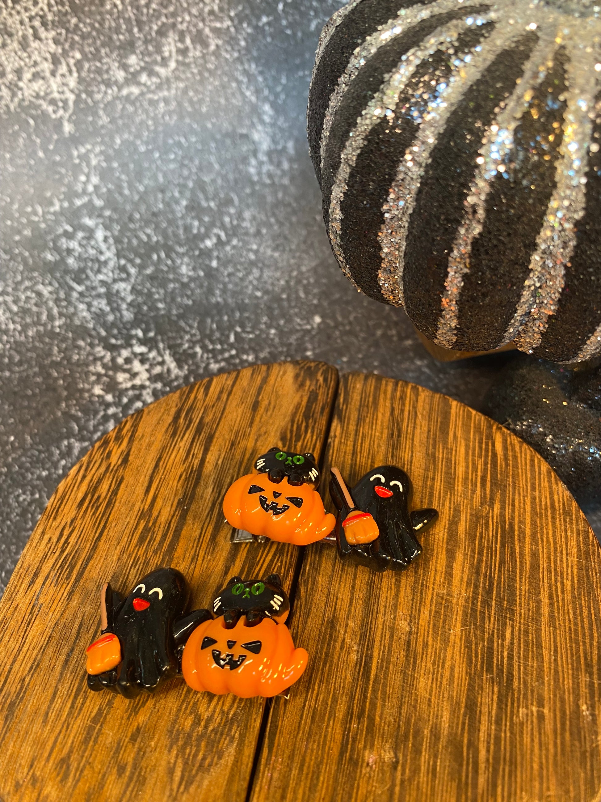 Halloween hair clips, colorful hair accessories, spooky cute hair clips, ghost hair clip, pumpkin hair clip, witch hat hair clip, Halloween costume accessory, festive hair accessories, Halloween party hair clips, trick-or-treat hair clips, Halloween gift, Halloween themed accessories, cute Halloween hair clips, kids Halloween hair clips, adult Halloween accessories.