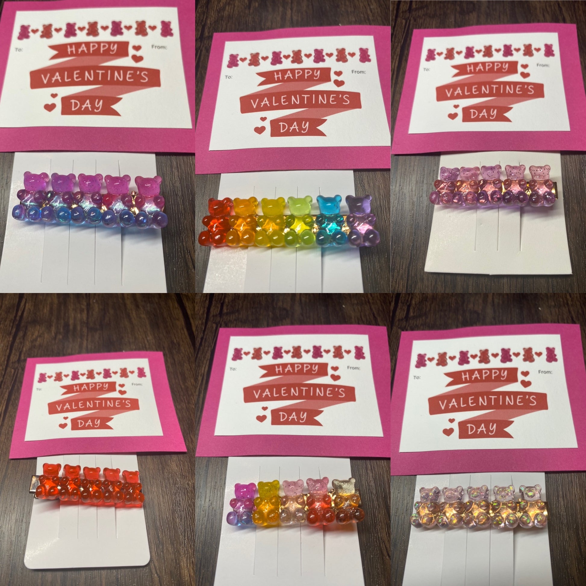 Handmade Valentine with Colorful Gummy Bear hair clip pair in the color of your choice!