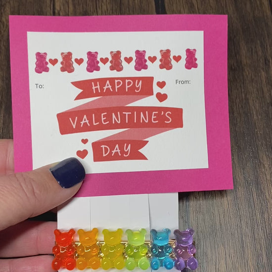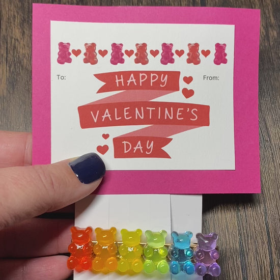 Each Valentine comes with card and 1 pair of gummy bear clips in the color of your choice. Cards can be personalized upon request.