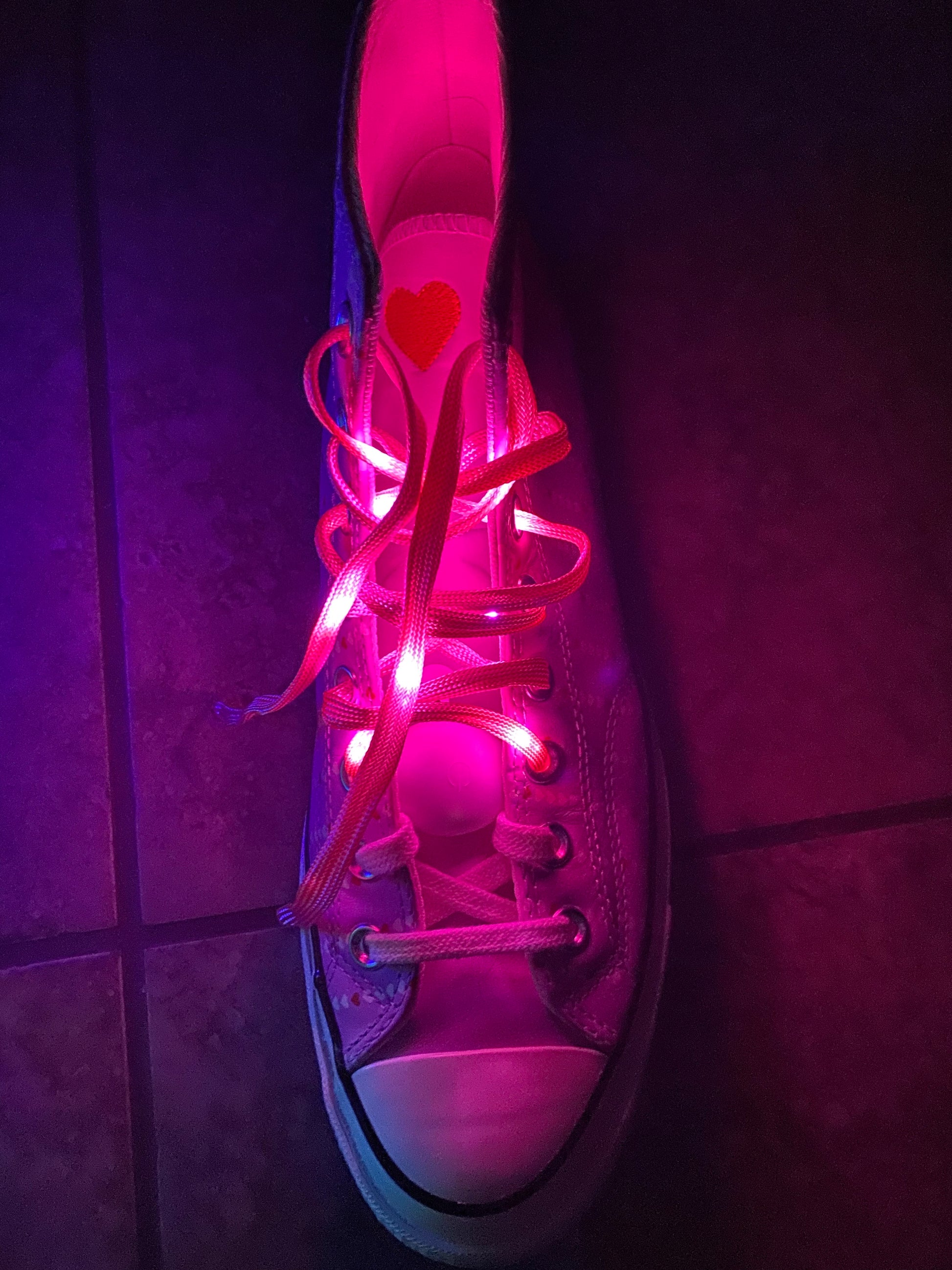 Stand out in the crowd with these light-up LED shoelaces. Perfect for concerts, birthdays, parties, dances, skating rinks, all outdoor events, and Halloween. A fun and festive way to add color to your outfit! Available in 8 color options. Each order comes with 1 set of laces that will outfit 1 pair of shoes.