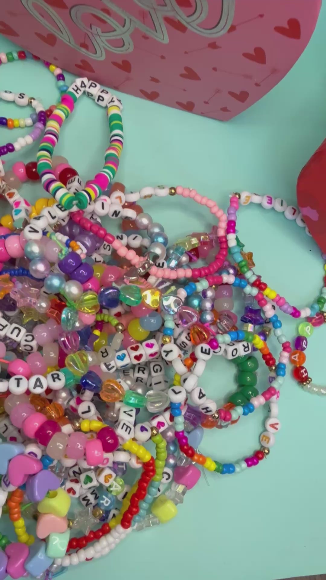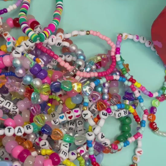 - Handmade beaded friendship bracelets (one per card)